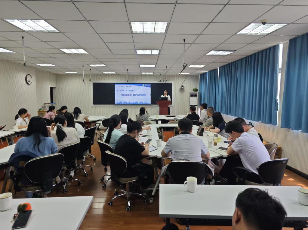 活動(dòng)中,陳老師以《城市地理學(xué)》課程為范例,從教學(xué)理念、教學(xué)準(zhǔn)備、教學(xué)實(shí)施及教學(xué)反思等四個(gè)方面進(jìn)行了詳盡而深入的闡述。她重點(diǎn)介紹了由能力、內(nèi)容、平臺(tái)構(gòu)成的三維架構(gòu),以及基礎(chǔ)、前沿、實(shí)踐相融合,多主體、多時(shí)空交織,教學(xué)評(píng)測(cè)、學(xué)研賽用多元協(xié)同的教學(xué)模式。她指出,學(xué)科核心素養(yǎng)是學(xué)生通過學(xué)習(xí)逐步形成的正確價(jià)值觀念、必備品格和關(guān)鍵能力。為此,她倡導(dǎo)專業(yè)與思政相融合、教師與學(xué)生相配合、線上與線下相結(jié)合、課內(nèi)與課外相聯(lián)結(jié)的課堂教學(xué)方法。示范課展示結(jié)束后,陳老師與參會(huì)教師們進(jìn)行了積極而深入的互動(dòng)交流。