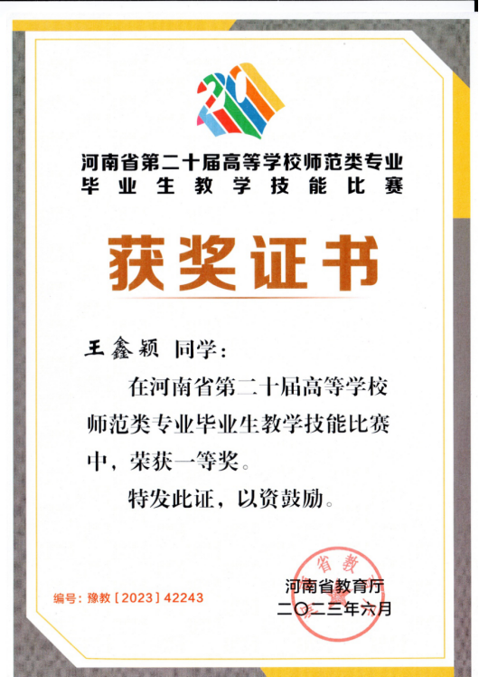 近日,河南省第二十屆高等學(xué)校師范類專業(yè)畢業(yè)生教學(xué)技能比賽結(jié)果揭曉。我院2019級(jí)地理科學(xué)專業(yè)學(xué)生王鑫穎榮獲一等獎(jiǎng),代淳、張盼盼榮獲三等獎(jiǎng),張向敏老師榮獲指導(dǎo)教師獎(jiǎng)。