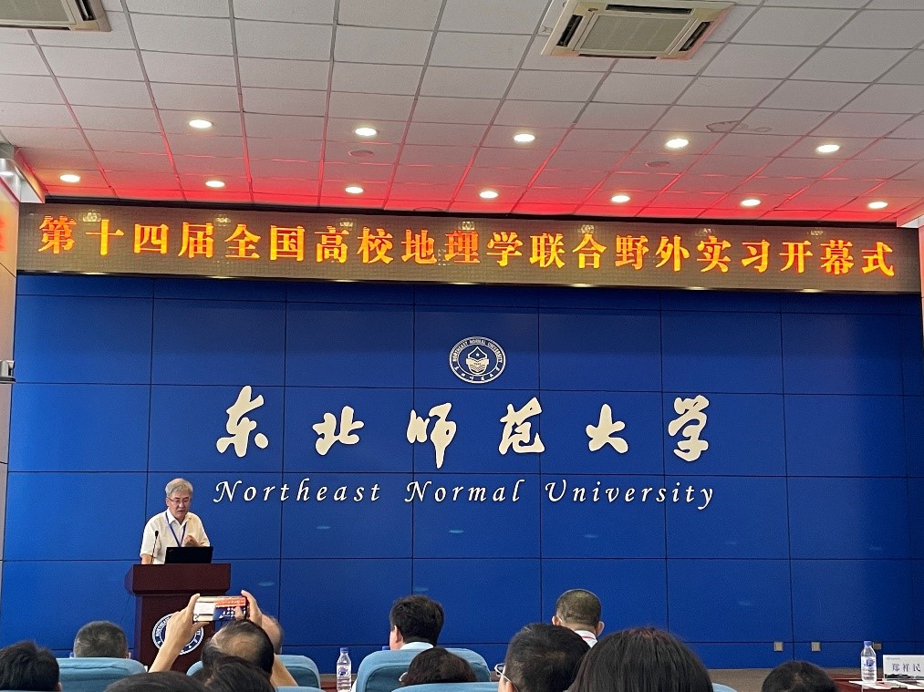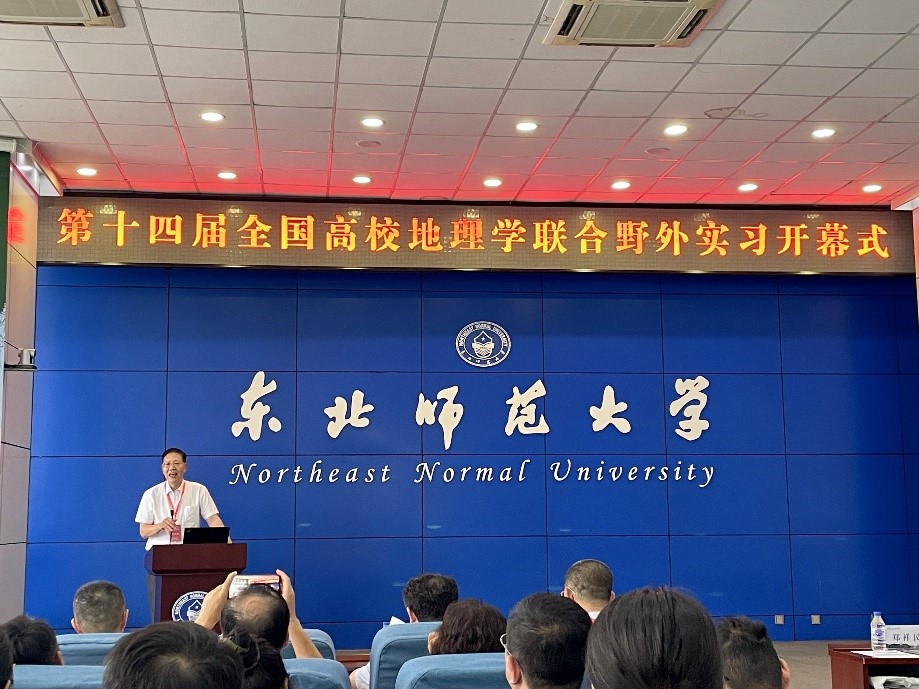 7月29日上午,聯(lián)合實(shí)習(xí)開(kāi)幕式在東北師范大學(xué)舉行,開(kāi)幕式由中國(guó)地理學(xué)會(huì)副理事長(zhǎng),東北師范大學(xué)吳正方教授主持。東北師范大學(xué)黨委副書記王延教授、教育部高等學(xué)校地理科學(xué)類專業(yè)教學(xué)指導(dǎo)委員會(huì)秘書長(zhǎng)彭建教授、全國(guó)大學(xué)生地理學(xué)野外聯(lián)合實(shí)踐教學(xué)高等聯(lián)盟理事長(zhǎng)鄭祥民教授先后致辭講話。鄭祥民教授指出,野外實(shí)習(xí)是地理學(xué)人才培養(yǎng)的重要部分,要和國(guó)家戰(zhàn)略結(jié)合起來(lái),在野外實(shí)習(xí)中培養(yǎng)學(xué)生發(fā)現(xiàn)問(wèn)題、解決問(wèn)題能力,并對(duì)此次聯(lián)合野外實(shí)習(xí)提出保證安全、吃苦耐勞、團(tuán)隊(duì)協(xié)作等幾點(diǎn)要求。隨后,東北師范大學(xué)地理科學(xué)學(xué)院王升忠教授詳細(xì)介紹了此次聯(lián)合實(shí)習(xí)方案,將實(shí)習(xí)線路的設(shè)計(jì)理念概括為:白山黑土黃海綠江,穿時(shí)跨域窮理尋章。