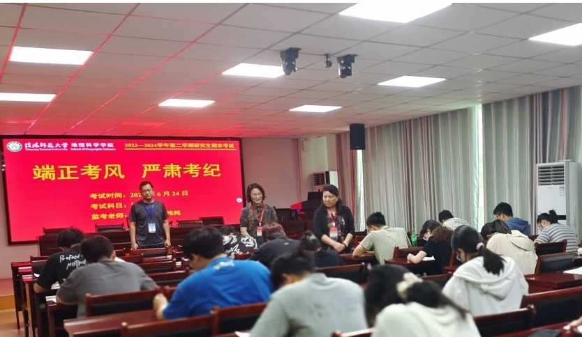 6月24—27日,2023—2024學(xué)年第二學(xué)期研究生期末考試在理科樓410會(huì)議室順利舉行,地理科學(xué)學(xué)院黨委書記宋力、副院長(zhǎng)劉明華蒞臨期末考試現(xiàn)場(chǎng),對(duì)考場(chǎng)進(jìn)行全面巡視。