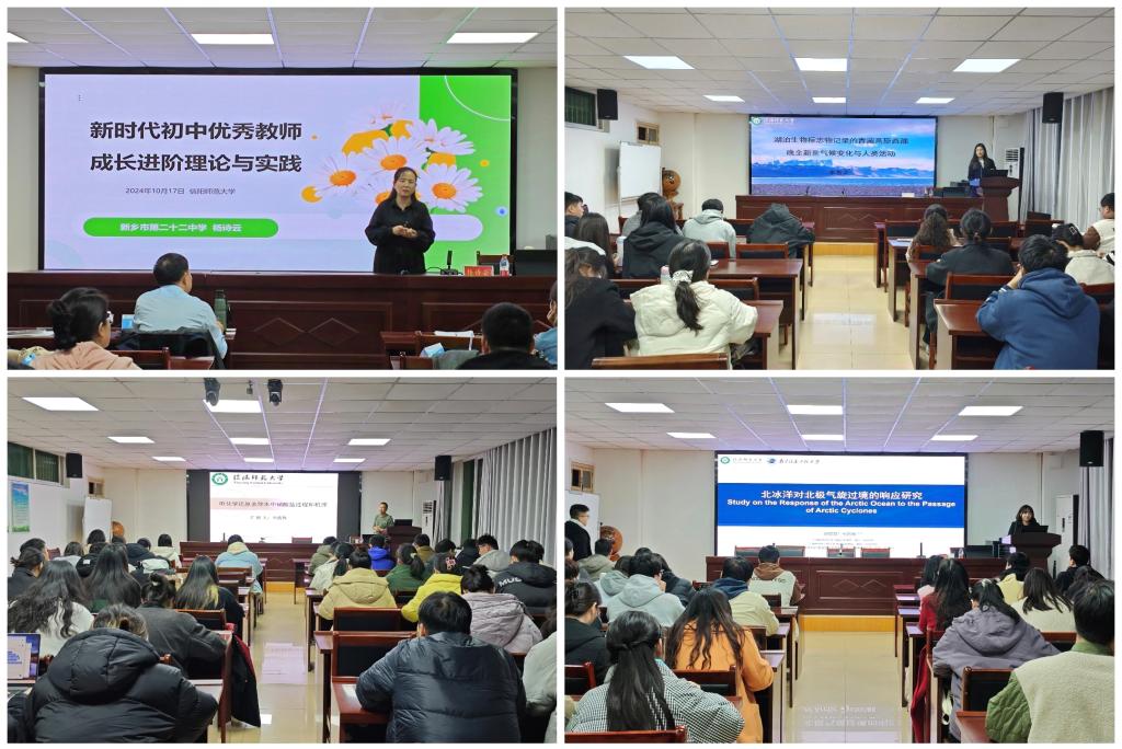 為拓寬研究生學(xué)術(shù)視野,提高研究生科研素養(yǎng),我院依托“南湖講壇”“賢嶺學(xué)術(shù)沙龍”等交流平臺,于11月24日-12月27日,分別邀請河南理工大學(xué)樊良新教授和喬旭寧教授、北京師范大學(xué)陳彬教授、華東師范大學(xué)丁金宏教授和新鄉(xiāng)市第二十二中學(xué)楊詩云副教授等校外知名專家學(xué)者以及李秀美、劉昱君、申戰(zhàn)輝、張鵬飛、李宗盟、何偉純等校內(nèi)優(yōu)秀教師在理科樓南樓410給全體研究生作學(xué)術(shù)報告。這些系列講座,涵蓋自然地理學(xué)、人文地理學(xué)、學(xué)科教學(xué)、測繪工程、環(huán)境科學(xué)與工程等學(xué)科,全面激發(fā)了我院研究生參與學(xué)術(shù)研究的熱情,開闊同學(xué)們的學(xué)術(shù)視野,對今后學(xué)術(shù)論文撰寫、專業(yè)技能提升等有極大推動作用。