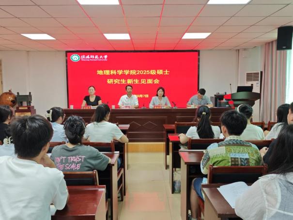 9月7日,地理科學學院2025級碩士研究生新生見面會于理科樓南樓410會議室召開。地理科學學院副院長顏俊、潘曉芳,科研與研究生工作秘書崔向超、研究生班主任孫煥宇及2025級全體研究生等60余人參加了此次會議,會議由崔向超老師主持。