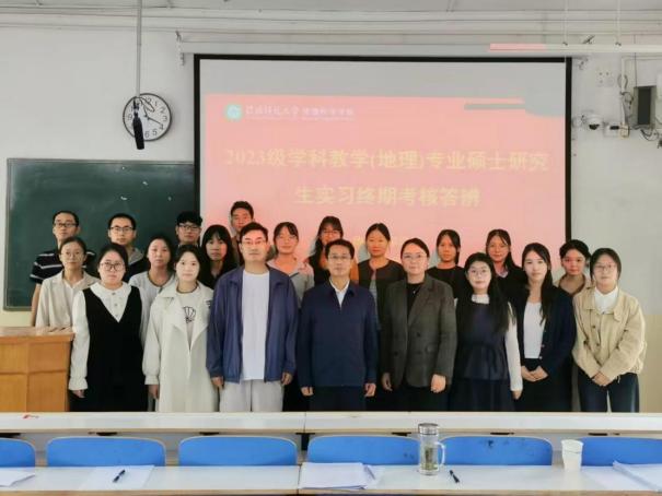 在學(xué)科教學(xué)(地理)專業(yè)考核現(xiàn)場(chǎng),研究生們通過(guò)線上線下相結(jié)合的方式進(jìn)行匯報(bào)。他們圍繞課堂教學(xué)實(shí)踐、班主任工作、教育調(diào)研等核心任務(wù),系統(tǒng)展示了實(shí)習(xí)期間的豐碩成果與深刻感悟,并分享了在教學(xué)方法創(chuàng)新、課堂互動(dòng)效果提升及教研素養(yǎng)培育等方面的成長(zhǎng)經(jīng)驗(yàn)。在研究生分享實(shí)習(xí)成果與經(jīng)驗(yàn)后,顏俊副教授作總結(jié)發(fā)言,充分肯定了同學(xué)們的實(shí)踐成果,并圍繞如何實(shí)現(xiàn)從優(yōu)秀實(shí)習(xí)生到合格教師的角色轉(zhuǎn)變,對(duì)同學(xué)們提出了三點(diǎn)核心建議:一是青年教師應(yīng)認(rèn)真對(duì)待教學(xué),虛心向資深教師學(xué)習(xí),借鑒不同學(xué)校的教學(xué)經(jīng)驗(yàn);二是要重視教學(xué)實(shí)踐中的積累,將個(gè)人感悟融入教學(xué)論文;三是提醒學(xué)生盡早完成畢業(yè)論文。鼓勵(lì)大家珍惜實(shí)習(xí)機(jī)會(huì),注重實(shí)踐,通過(guò)不斷學(xué)習(xí)和總結(jié)實(shí)現(xiàn)專業(yè)成長(zhǎng)。