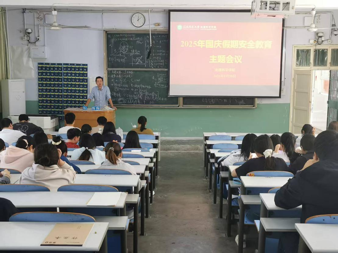 國(guó)慶節(jié)來臨之際,為強(qiáng)化學(xué)生安全防范意識(shí),規(guī)范行為舉止,保障學(xué)生平安過節(jié),2025年9月30日,地理科學(xué)學(xué)院組織召開了研究生安全教育主題班會(huì)。科研與研究生工作秘書崔向超、研究生班主任孫煥宇及全體碩士研究生共100余人參加此次會(huì)議。會(huì)議由崔向超主持。