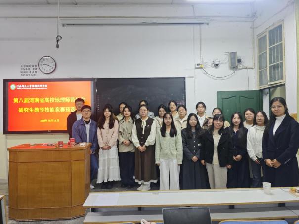 2025年10月18日,地理科學(xué)學(xué)院在J3-01和J3-07教室成功舉辦第八屆河南省高校地理師范生和研究生教學(xué)技能競賽預(yù)賽。本次預(yù)賽分為兩組,第一組在J3-01教室,郜彗副教授、李秀美副教授及研三學(xué)生楊燦燦擔(dān)任評委;第二組在J3-07教室,顏偉副教授、張向敏副教授及研三學(xué)生張旭擔(dān)任評委。本次預(yù)賽共37位研究生參加。