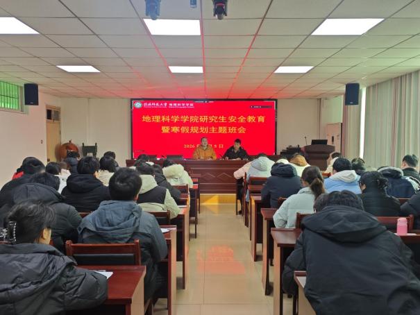 2026年寒假即將來臨,為切實排查假期安全隱患,引導(dǎo)學(xué)生科學(xué)規(guī)劃假期生活,全面提升學(xué)生自我管理能力,1月5日,我院于理科樓南樓410會議室召開了碩士研究生寒假安全主題班會。科研與研究生工作秘書崔向超,研究生班主任孫煥宇及全體碩士研究生參加此次會議。