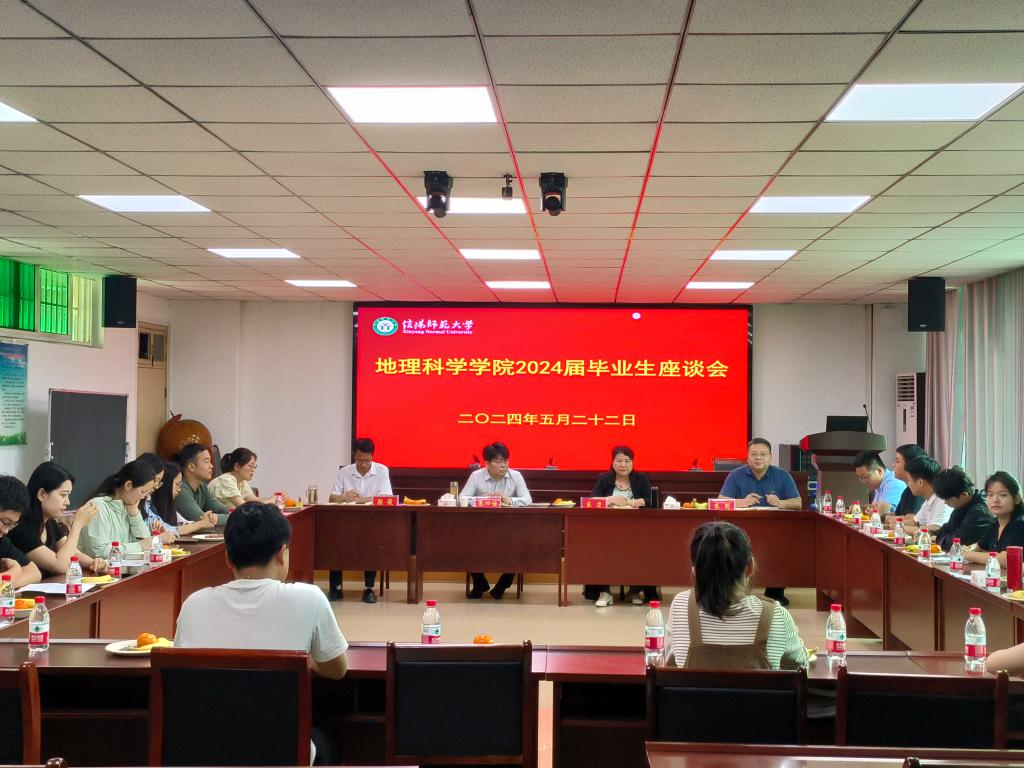 朱四倍在講話中表示,到地理科學(xué)學(xué)院參加2024屆畢業(yè)生座談會是堅持以學(xué)生為中心,落實學(xué)校“三對接”制度的具體舉措,通過召開座談會走近學(xué)生、了解學(xué)生,解決好學(xué)生遇到的實際困難。他希望同學(xué)們要繼續(xù)加強理論知識學(xué)習(xí),善于運用學(xué)過的理論知識來指導(dǎo)工作實踐,在實踐中進一步提高自己解決實際問題的能力。他表示,同學(xué)們以后無論將來從事什么樣的工作,無論面對什么樣的困難和挑戰(zhàn),都要保持積極樂觀的心態(tài),通過自己不懈的努力奮斗,創(chuàng)造更加美好的未來。