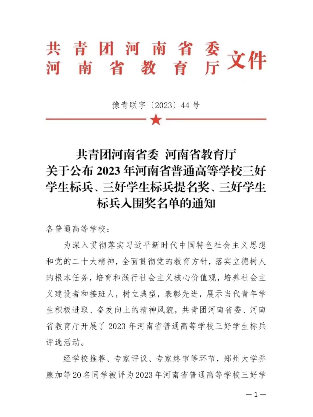 近日,共青團河南省委、河南省教育廳印發(fā)《關于公布2023年河南省普通高等學校三好學生標兵、三好學生標兵提名獎、三好學生標兵入圍獎名單的通知》,全省共評選出三好學生標兵20人、三好學生標兵提名獎20人、三好學生標兵入圍獎20人。我院2020級地理信息科學班高子涵同學榮獲“河南省三好學生標兵”榮譽稱號。