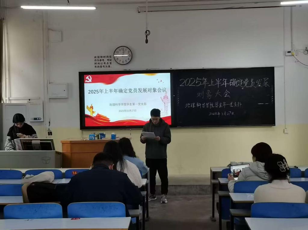 3月27日,我院學(xué)生第一黨支部2025年上半年黨員發(fā)展對象確定會議于教三207順利召開,支部書記顧治家、支部全體黨員及發(fā)展對象候選人參加會議。會議由顧治家主持。