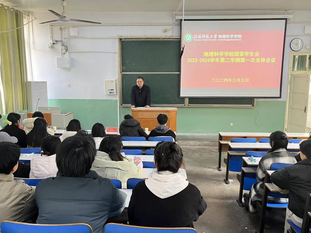 3月5日,我院團(tuán)委學(xué)生會2023-2024學(xué)年第二學(xué)期第一次全會在教二梯三順利召開。我院黨委副書記朱明,團(tuán)委老師姚玉坤、楊輝與全體學(xué)生會和社團(tuán)的骨干成員共同參加了此次會議。會議由劉藝主持。