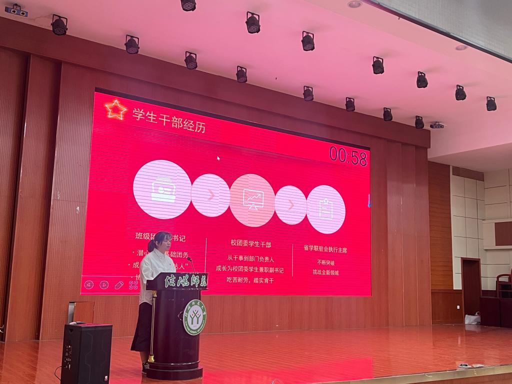 本次評(píng)選經(jīng)個(gè)人申請(qǐng)、學(xué)院初賽、學(xué)校初審、線上線下展示、現(xiàn)場(chǎng)評(píng)審等選拔環(huán)節(jié),全校共24名候選人入圍決賽。決賽現(xiàn)場(chǎng),24位候選人以演講形式向與會(huì)師生分享了個(gè)人成長(zhǎng)成才途中感人至深的勵(lì)志故事,現(xiàn)場(chǎng)觀眾頗為動(dòng)容、掌聲不斷。24位大學(xué)生“自強(qiáng)之星”候選者的成長(zhǎng)成才經(jīng)歷各異,無(wú)不用堅(jiān)韌不拔的精神、奮發(fā)有為的姿態(tài)書(shū)寫(xiě)青春絢麗篇章,彰顯師大學(xué)子自立自強(qiáng)的昂揚(yáng)風(fēng)貌。經(jīng)分享展示,我院2020級(jí)地理信息科學(xué)班團(tuán)支書(shū)、河南省學(xué)生聯(lián)合會(huì)駐會(huì)執(zhí)行主席高子涵同學(xué)脫穎而出,榮獲信陽(yáng)師范大學(xué)第一屆大學(xué)生“自強(qiáng)之星”稱號(hào)。