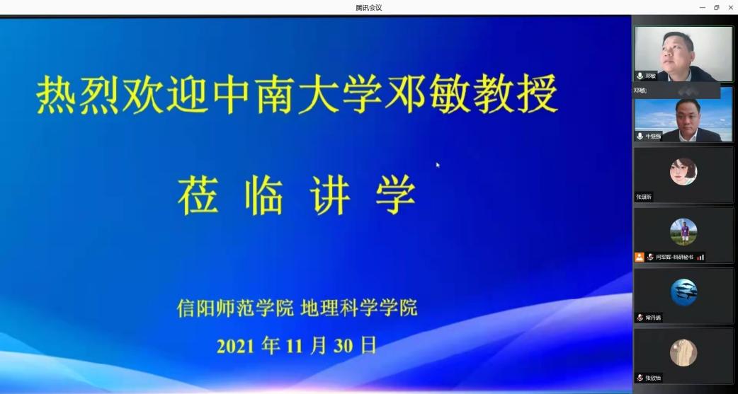 11月30日,應(yīng)地理科學(xué)學(xué)院邀請(qǐng),中南大學(xué)鄧敏教授通過騰訊會(huì)議平臺(tái)作了題為“城市時(shí)空大數(shù)據(jù)挖掘”的學(xué)術(shù)報(bào)告。我院青年教師、碩士研究生和本科生近200人參加了報(bào)告會(huì),報(bào)告會(huì)由院長(zhǎng)牛繼強(qiáng)教授主持。